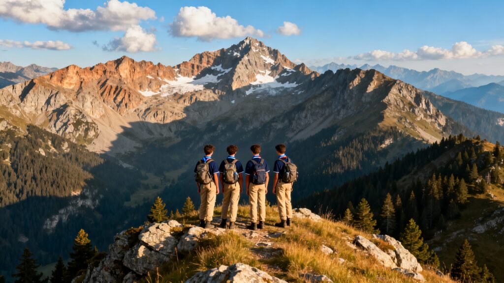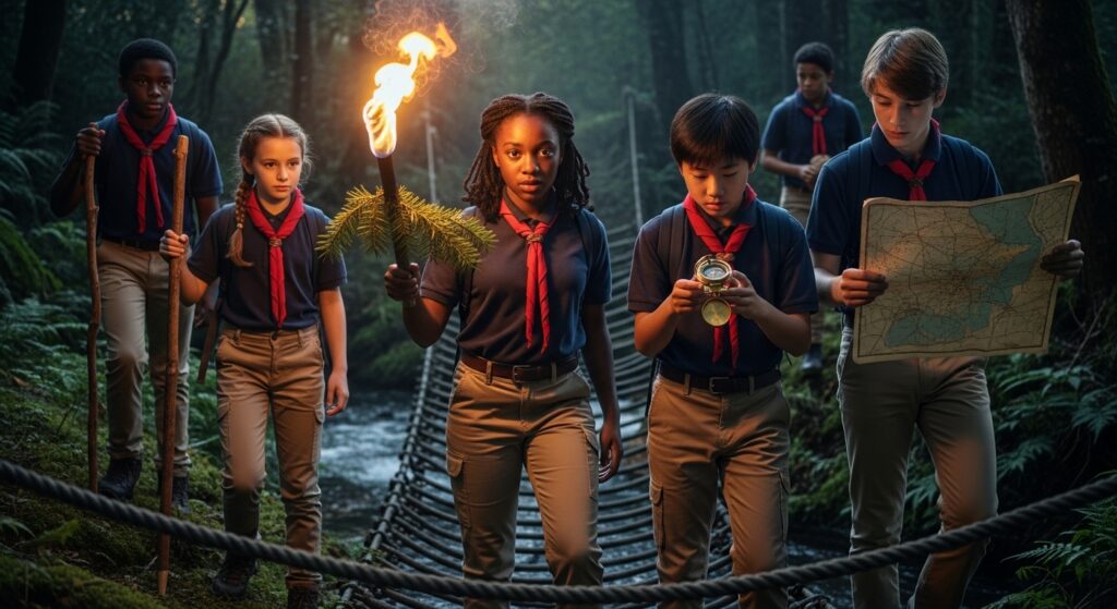 • Exploration du monde : Le scoutisme apprend aux jeunes à franchir l’espace et à ouvrir des portes, pour aller à la rencontre du monde réel.
